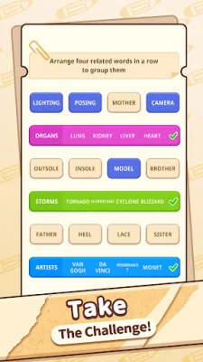 Bereid je voor op een uniek intellectueel avontuur met Associated Word Sort. Dit verbindingswoordspel test je observatievermogen voor woordovereenkomsten en je talent om categorieën te doorbreken. Ontcijfer een wirwar van schijnbaar willekeurige woorden en groepeer vakkundig verbindingen om de uitdagingen van dit slimme woordspel te overwinnen.