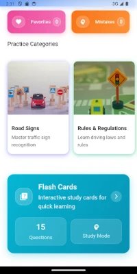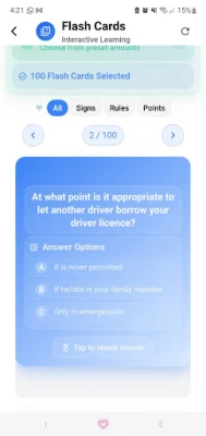 Ontworpen om jouw studietraject zo effectief en comfortabel mogelijk te maken, integreert de app diverse krachtige hulpmiddelen. Verdiep je in essentiële verkeersregels en -borden met behulp van interactieve flashcards, ideaal voor snelle en efficiënte herhalingen. Test je reactievermogen en kennis onder druk met de 'Aangepaste Tijd Uitdaging', waarmee je de duur van je oefensessies volledig zelf bepaalt. Bovendien zorgt de speciale nachtmodus voor een prettige leeservaring, ongeacht de omgevingsverlichting, perfect voor studeren in de avonduren.