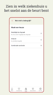 De IZA app helpt u ook de juiste zorg te vinden die naadloos aansluit bij uw wensen. Ontdek snel een geschikte zorgverlener in uw buurt of vergelijk wachttijden in verschillende ziekenhuizen. Voor persoonlijk advies vraagt u direct een gesprek aan met een zorgadviseur. Maak bovendien eenvoudig digitaal contact met uw huisarts en raadpleeg betrouwbare informatie over gezondheid en ziektes via Thuisarts.nl, allemaal vanuit één centrale plek.