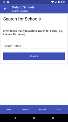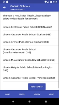 Vind eenvoudig scholen in Ontario met deze app. Zoek specifieke scholen op naam of ontdek welke onderwijsinstellingen er bij u in de buurt zijn. Een essentiële tool voor het verkennen van onderwijsmogelijkheden in Ontario, ontworpen voor gebruiksgemak.