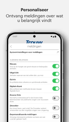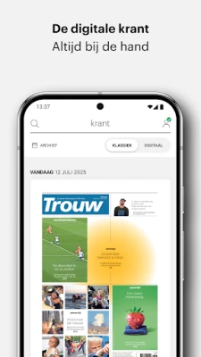 Binnen de Trouw-app heeft u directe toegang tot de meest actuele berichtgeving en verdiepende achtergrondverhalen, zorgvuldig samengesteld voor inzicht en context. Navigeer moeiteloos door vertrouwde rubrieken zoals Verdieping, Opinie, Religie & Filosofie, Duurzaamheid & Natuur, en Cultuur & Media. Daarnaast stelt de app u in staat om de complete dagelijkse krant als digitale PDF te ervaren, inclusief het magazine Tijdgeest, of de dynamische Digitale Editie te verkennen, verrijkt met alle mogelijkheden van digitaal. Bepaal zelf welke nieuwsmeldingen u wenst te ontvangen, zodat u altijd op de hoogte bent van wat u het meest relevant vindt.