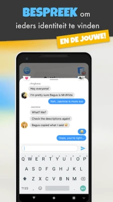 Duik in de meeslepende wereld van Undercover, het dynamische groepsspel dat zowel online als offline tot leven komt met vrienden of totaal onbekenden! Je primaire doel: ontrafel de verborgen identiteiten van je medespelers, inclusief die van jezelf, door middel van strategische deductie. Elk mysterie begint met jouw unieke, geheime woord, de sleutel tot zowel overwinning als ontmaskering. Bereid je voor op een intense strijd van geesten, waar elke aanwijzing telt en vertrouwen een luxe is.