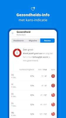 Ontdek in één oogopslag de huidige situatie en de verwachting voor de komende dagen. Weeronline biedt een gedetailleerde buienradar, realtime neerslag- en zonkaarten voor 24 en 48 uur, en nauwkeurige meldingen bij naderende regen. Bekijk de uitgebreide 48-uurs en 14-daagse weersverwachting, inclusief wind- en zonkracht, en krijg helder weeradvies. Uniek is de gespecialiseerde informatie voor hooikoorts, reuma en migrainepatiënten, aangevuld met handige cijfers voor diverse buitenactiviteiten en de meest recente weernieuwsberichten en waarschuwingen. Voeg eenvoudig je favoriete locaties toe om direct inzicht te krijgen in het lokale weer.